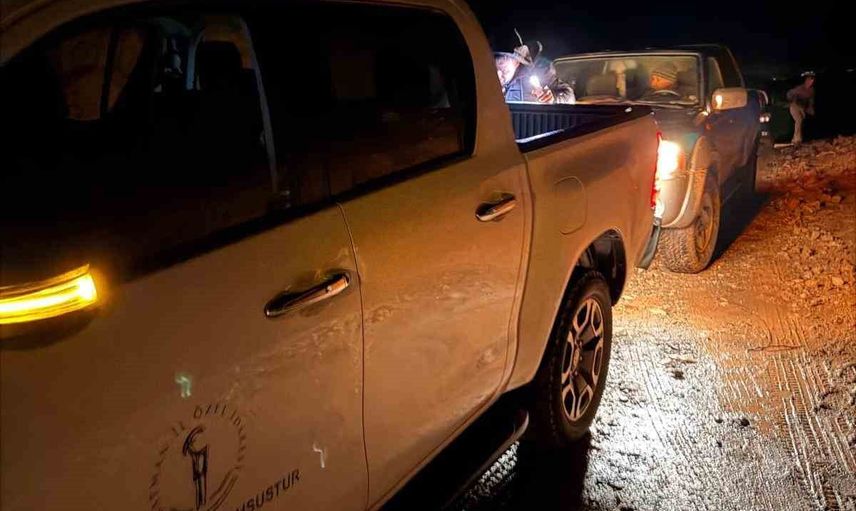 GERCÜŞ’TE ÇAMURA SAPLANAN ARACI ÖZEL İDARE EKİPLERİ KURTARDI