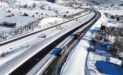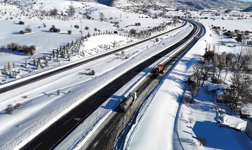Karayolları ve trafik ekipleri kar küreme ve tuzlama çalışmalarını yoğun şekilde sürdürdü. Sabahın erken saatlerinde yol kontrollü olarak trafiğe verilirken, kar kürüme çalışmalarının devam ettiği bölgede dün gece mahsur kalan araçlar dron ile havadan görüntülendi.