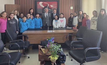 Projede görevli okul müdürü Cemal Aksu ile proje öğretmenleri Dilek Durmuş, Nalan Özcan ve Meryem Koçak tarafından yapılan sunum, Germencik İlçe Milli Eğitim Müdürü Kemal Çiftçi'ye aktarıldı.