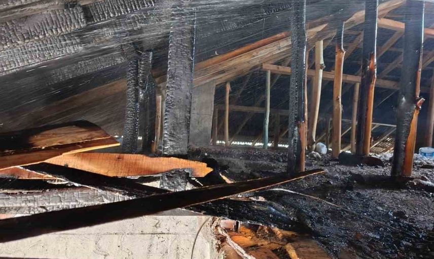 Ekiplerin müdahalesiyle yangın söndürüldü; müdahale sonrası çatıda hasar meydana geldi.