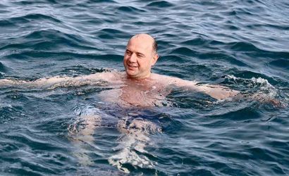 Çalışma incelemesi sırasında soğuk havaya aldırış etmeden kısa yüzme