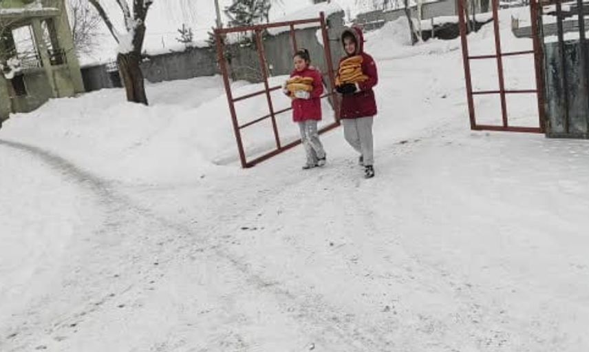 Bitlis’in Güroymak ilçesine bağlı Gölbaşı beldesinde karne tatilini köylerinde geçiren Mina (13) ve Nisa Okay (11), babaları Mehmet Okay ile birlikte yaban hayvanlarına destek verdi.