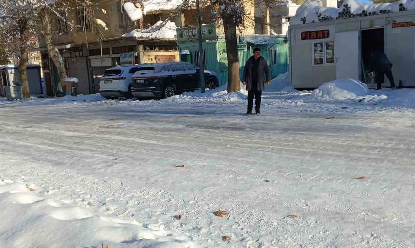 Adıyaman'ın Gölbaşı ilçesinde kar yağışının ardından etkili olan dondurucu soğuklar cadde ve sokakları adeta buz pistine çevirdi.