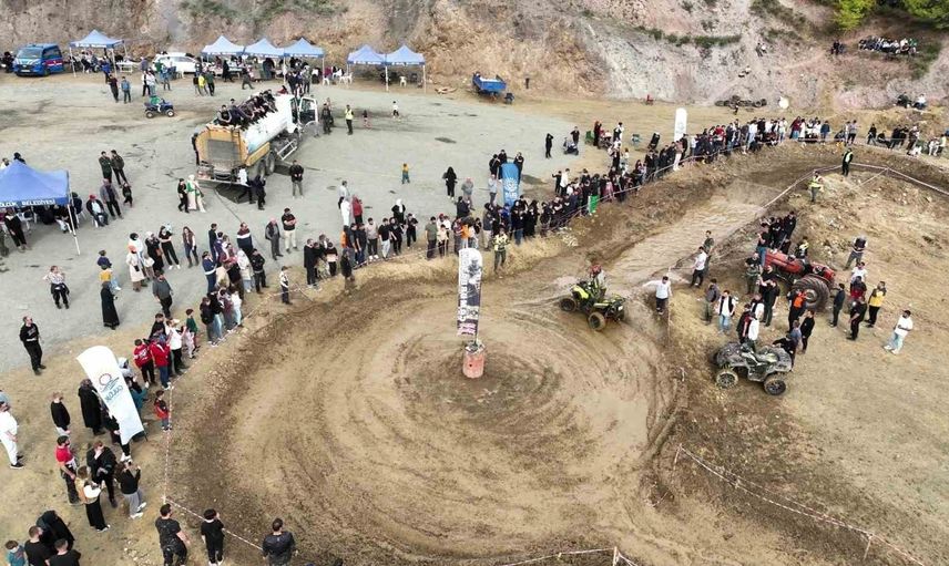 Seyirciler yarışları güvenlik şeridinden takip etti; ATV’lerden sıçrayan çamurlar izleyicileri etkiledi ve yarışlara farklı bir heyecan kattı.