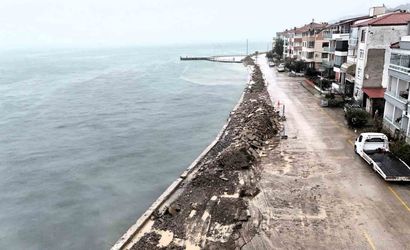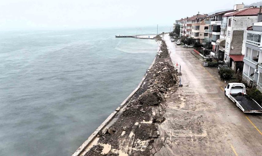 Gölcük’e bağlı Ulaşlı sahilinde, olumsuz hava şartlarında deniz seviyesinin yükselmesinin yol açtığı su baskınlarını engellemek amacıyla 550 metre uzunluğunda bir dalgakıran inşa ediliyor.