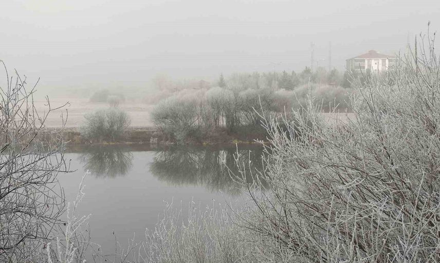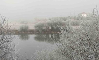 Göle'de dondurucu soğuk ve kırağı manzarası