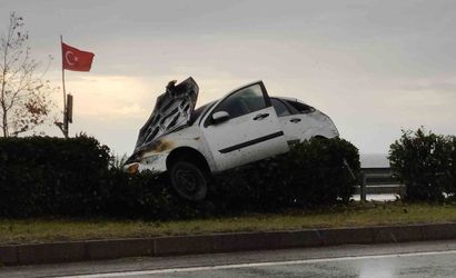 Görele'de trafik kazası: otomobil bariyere çarparak alev aldı