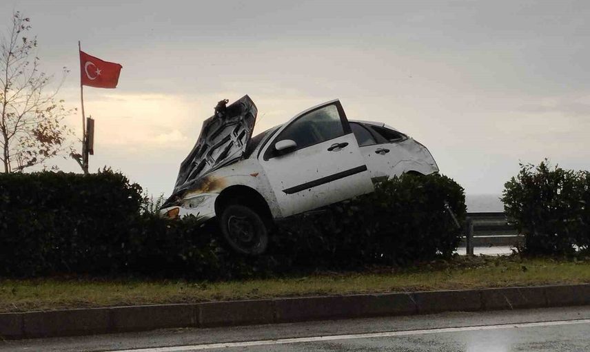 Trabzon'dan Samsun istikametine seyir halinde olan 55 AEY 564 plakalı otomobil, hastane kavşağında sürücünün direksiyon hâkimiyetini kaybetmesi sonucu bariyerlere çarptı. Çarpmanın ardından araçta yangın çıktı ve otomobil kısa sürede alevlere teslim oldu.