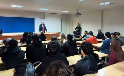 Sabıkaları ve deneyimleriyle dikkati çeken görme engelli Savaş Saygılı, Sakarya Uygulamalı Bilimler Üniversitesi Bilişim Teknolojileri Meslek Yüksekokulu'nda düzenlenen etkinlikte öğrencilerle bir araya geldi.