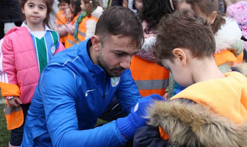 Sahaya inen futbolcular, minik taraftarlara formalarını tek tek imzalayarak sevincin artmasına neden oldu. Oyuncularla kurulan sıcak iletişim, renkli ve duygulu görüntüler oluşturdu.