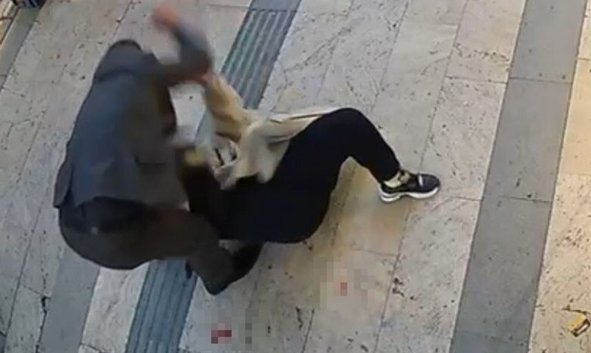 Görüntülerde N.K.'nin arkadaşlarıyla konuştuğu sırada O.K.'nin arkadan yaklaşıp kadını defalarca bıçakladığı, çevredeki vatandaşların hızla müdahale ederek saldırganı meyve kasalarıyla etkisiz hale getirdiği görülüyor.