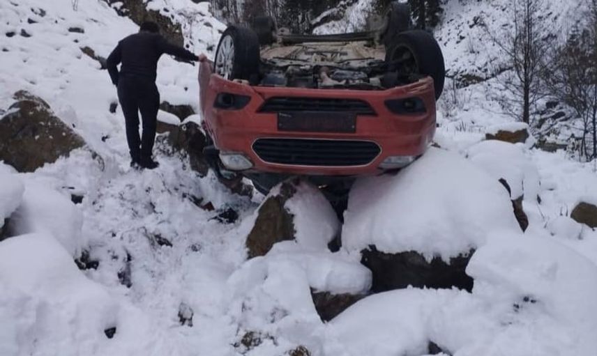 GÜMÜŞHANE’NİN KÜRTÜN İLÇESİNDE, YUKARI KÜRTÜN GRUP YOLUNDA KARLI YOLDA KONTROLDEN ÇIKAN KAMYONETİN DERE YATAĞINA YUVARLANMASI SONUCU 1’İ AĞIR 5 KİŞİ YARALANDI.