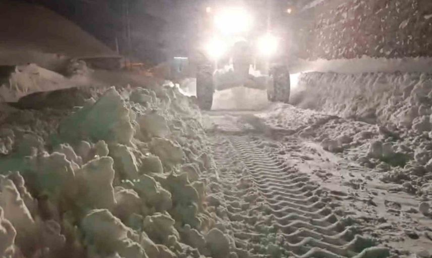 Karla mücadele ekipleri, kapalı olan köy yollarını greyder ve lastik tekerlekli yükleyici gibi ağır makinelerle temizleyerek trafik akışını yeniden sağlıyor. Birden fazla makinenin eş zamanlı çalıştığı bölümlerde ekipler, kar duvarlarını aşarak yolları ulaşıma açıyor.