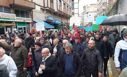 Rize'nin Güneysu ilçesinde, Galata Köprüsünde düzenlenen 'Sinmiyoruz, susmuyoruz Filistin'i unutmuyoruz' sloganlı etkinliğe destek amacıyla bir yürüyüş gerçekleştirildi.
