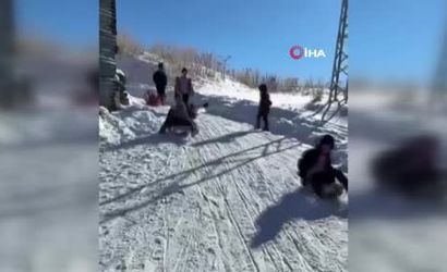 Erzurum'un Narman ilçesine bağlı Güvenlik köyünde iki kadın öğretmen, karne dağıtımı öncesinde öğrenciler için unutulmaz bir etkinlik gerçekleştirdi. Öğretmenler ve çocuklar, kızaklar ve poşetlerle kayarak keyifli vakit geçirdi.