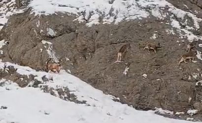 Güzeldere’nin karlı yamaçlarında dağ keçileri görüntülendi