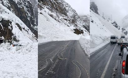 Şine Dağı mevkiinde düşen çığ taşıt trafiğini etkiledi