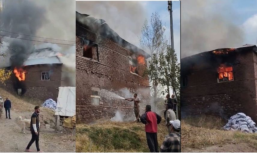 Hakkari iline bağlı Geçitli köyünde, 13 nüfusun yaşadığı ve Bedel Tekin'e ait 2 katlı toprak evde yangın çıktı.