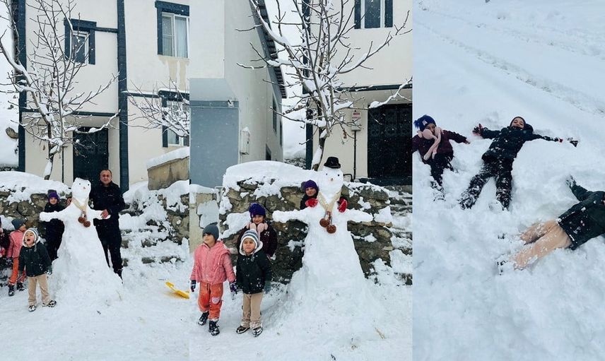 Kar yağışının sevinci ise mahalle çocuklarına kaldı. Karşıyaka Mahallesi'nde yaşayan Yunus Ertuş, çocukların isteğini kırmayarak onlarla birlikte kardan adam yaptı. Çocuklar yaptıkları kardan adamın önünde hatıra fotoğrafı çektirip soğuğa rağmen neşelerini korudu.