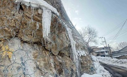 Dağgöl Mahallesi’nde bulunan yaklaşık 15 metre yüksekliğindeki Mir Kalesi kayalıkları da buzla kaplandı. Kayalardan sarkan buz kütlelerinin bazı bölgelerde 1,5 metreye ulaştığı görüldü; oluşan sarkıtlar hem dikkat çekici bir görüntü oluşturdu hem de vatandaşlarda tedirginlik yarattı.