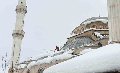 Hakkari'de Ulu Cami çatısındaki kar temizliği yapıldı