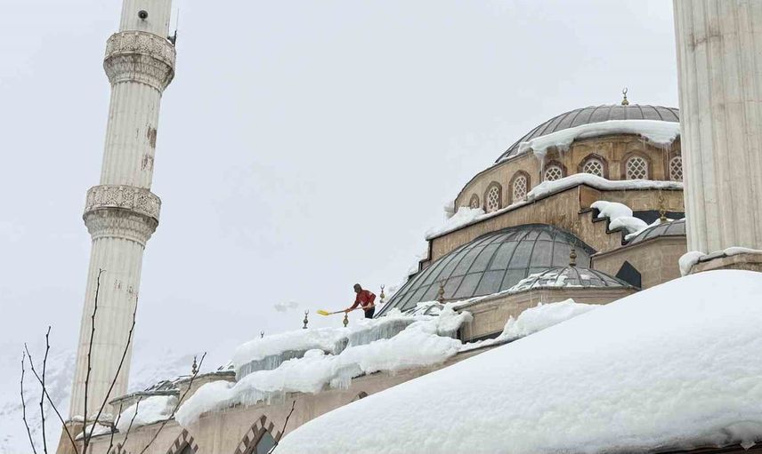 Hakkari merkezinde etkili olan kar yağışının ardından Ulu Cami çatısında biriken karlar, düşme riski oluşturacak düzeye gelince ilgili birimler önlem aldı. Cami yönetimi ile belediye ekipleri koordineli bir çalışma başlatarak çatıdaki karları güvenli yöntemlerle temizledi.