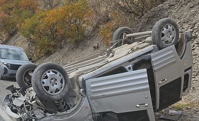 Kırıkdağ köyü yakınlarında hafif ticari aracın takla atması