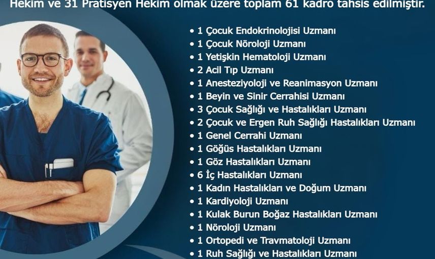 Kadro dağılımına göre çocuk endokrinolojisi, çocuk nöroloji ve yetişkin hematoloji branşlarında yandal uzmanları ile birlikte toplam 61 hekim Hakkâri’ye kazandırıldı; bunlar arasında 27 uzman hekim ve 31 pratisyen hekim bulunuyor.