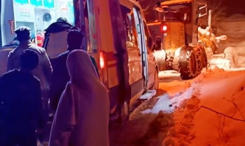 Yoğun kar yağışı nedeniyle kapanan köy yolunda yürütülen çalışmalar sayesinde hasta hastaneye ulaştırıldı