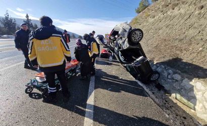 Hanönü'nde buzlanan yolda takla atan otomobil: 4 yaralı