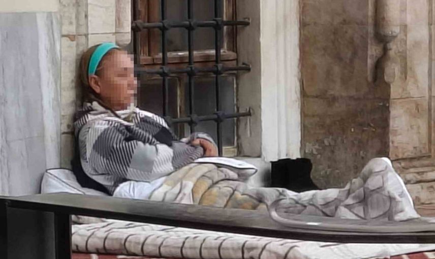 Hasan Çelebi Camii avlusunda yaşayan kadın, yardım tekliflerini kabul etmiyor