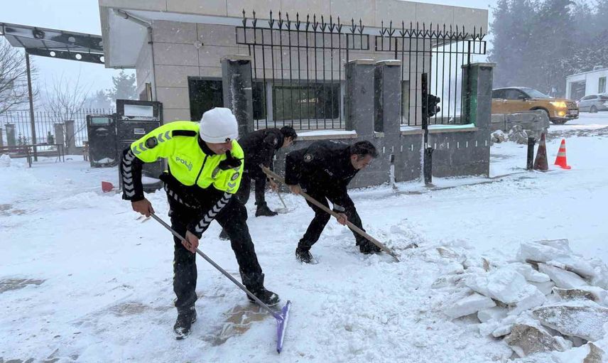 Hasanbeyli İlçe Emniyet Amirliği personeli, kürek ve temizlik ekipmanlarıyla kendi imkânlarıyla harekete geçerek hizmet binalarının önünü ve çevresini temizledi. Emniyet mensupları, böylece vatandaşların güvenli şekilde giriş çıkış yapabilmesini sağladı.