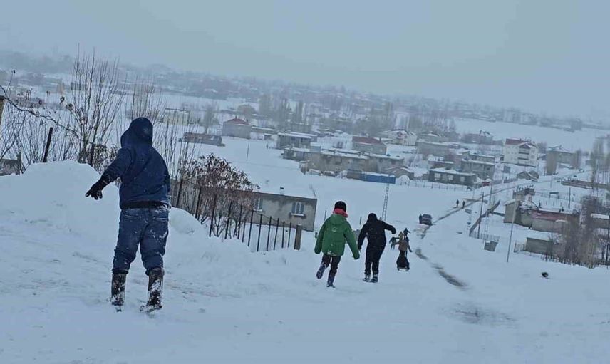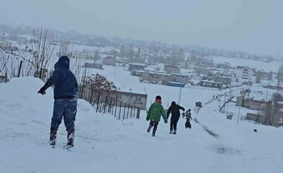Muş'un Hasköy ilçesinde etkili olan kar yağışının ardından çocuklar, poşet, naylon, kızak ve kendi el becerileriyle yaptığı demir patenlerle sokakları eğlence alanına çevirdi. Dağdibi köyündeki yokuşlu yollar adeta küçük birer kayak pisti haline geldi; ortaya renkli görüntüler çıktı ve çocukların yüzlerinde mutluluk belirdi.
