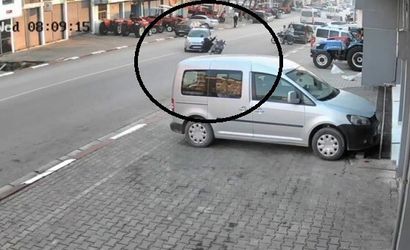 Çarpışmanın etkisiyle motosiklet metrelerce savrularak park halindeki başka bir araca çarptı. Motosiklette bulunan 2 kişi yerde sürüklendi ve kaza anları güvenlik kamerasına yansıdı.