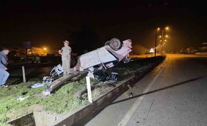 Hatay'ın Hassa ilçesinde, Gaziantep - Hatay yolu üzerindeki Aktepe Mahallesi'nde gece saatlerinde meydana gelen kazada 31 BAE 894 plakalı otomobil, sürücüsünün direksiyon hakimiyetini kaybetmesi sonucu aydınlatma direğine çarparak takla attı.