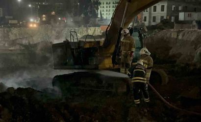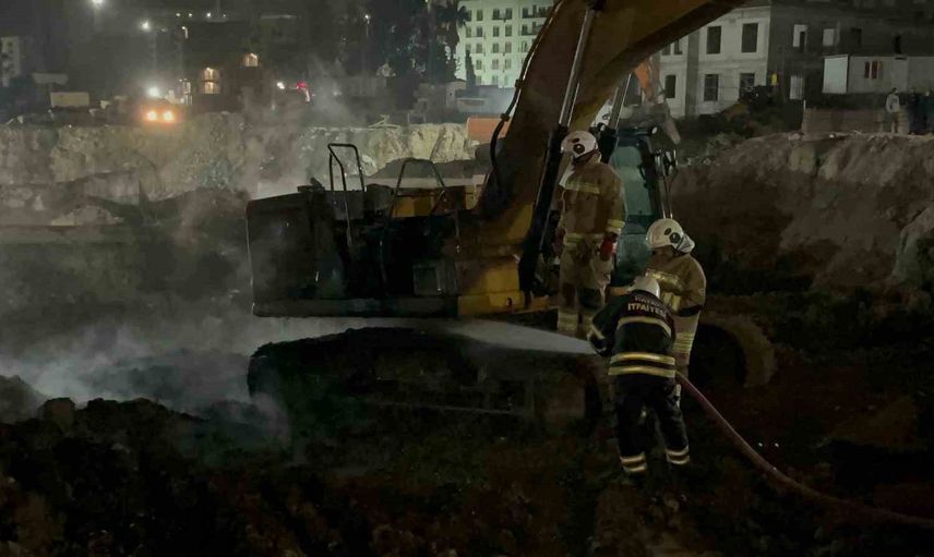 Armutlu Mahallesi'nde iş makinasının temasıyla meydana gelen patlama sonucu yangın çıktı