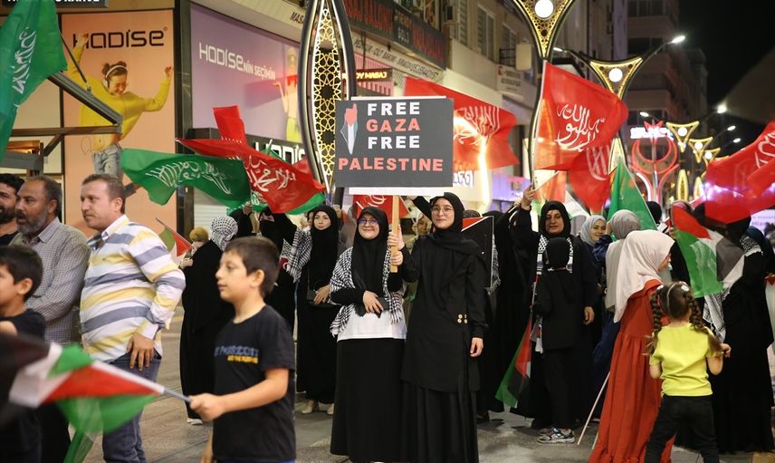 Peygamber Sevdalıları Vakfı tarafından organize edilen etkinlik, Savaş Mahallesi'nde yoğun bir katılımla gerçekleştirildi. Katılımcılar, İsrail aleyhine sloganlar atarak durumu protesto etti.