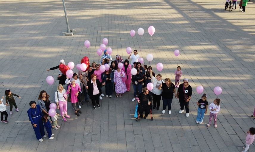 Hatay'da yakalandığı meme kanserini 5 yıllık mücadelesinin ardından yenen 48 yaşındaki Hatice Eryaşar için gökyüzüne pembe balonlar bırakıldı.