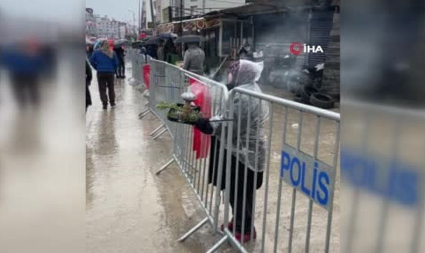 Hatay'ta, CHP Genel Başkanı Özgür Özel'in mitinginin yapıldığı Defne ilçesi Çekmece Mahallesi yakınlarında yaşayan Nuriye Bayrak adlı yaşlı bir kadın, elindeki tütsüyü yakarak yoldan geçenleri selamladı ve slogan attı.