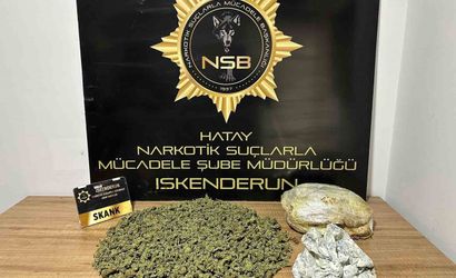 Hatay'ın İskenderun ilçesinde İl Emniyet Müdürlüğü ekiplerinin durdurduğu bir araçta yapılan aramada 1 kilo 750 gram esrar ile 673 gram skunk ele geçirildi.