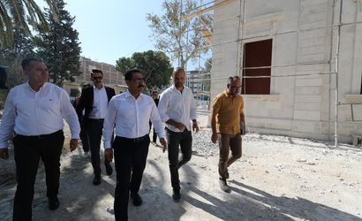 Hatay Valisi Mustafa Masatlı, 6 Şubat 2023'teki depremlerde ağır hasar alan ve restorasyonu süren tarihi valilik binası, konutu ile Meclis binasında incelemelerde bulundu.