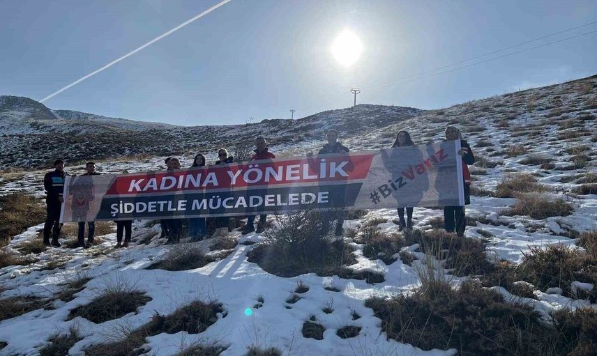 Elazığ'da 2 bin 347 rakımlı zirveden kadına yönelik şiddete karşı farkındalık etkinliği
