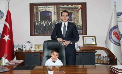 Atam, özel öğrencileri makam koltuğuna oturtup onlarla hatıra fotoğrafı çektirdi; buluşma samimi bir şekilde sonlandı.