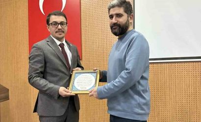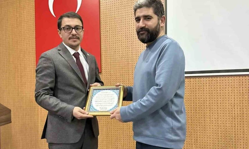Programın kapanış bölümünde, Hisarcık İlçe Millî Eğitim Müdürlüğü Şube Müdürü Caner Tevfik Tekin yazar Adem Özköse'ye katkılarından dolayı hediye takdim etti.