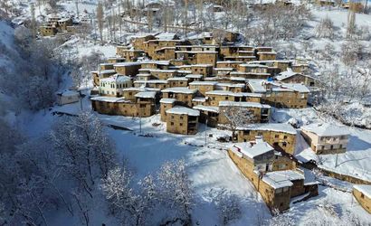 Bitlis iline bağlı Hizan ilçesindeki taş evlerden oluşan köyler, etkili kar yağışıyla birlikte adeta kartpostallık görüntüler oluşturdu. Derin vadilerin yamaçlarına kurulu olan bu tarihi yapıların beyaz örtüyle bütünleşen görünümü, doğa tutkunlarının ilgisini çekiyor.