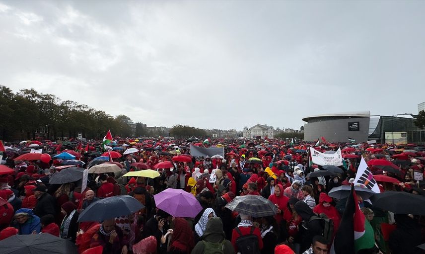 Hollanda'nın başkenti Amsterdam'da, hükümetin İsrail yanlısı politikalarını protesto etmek üzere yaklaşık 250 bin kişi toplandı.