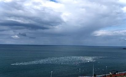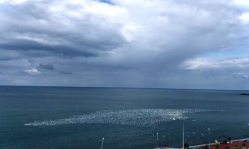 Artvin'in Hopa ilçesi açıklarında, deniz yüzeyinin hemen üzerinde bir araya gelen yüzlerce martı, adeta beyaz bir dalga gibi kıyı boyunca süzüldü. Kuşların uyumlu hareketleri, bölgedeki gözlemcileri büyüledi.