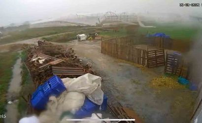 ANTALYA’NIN SERİK İLÇESİNDE MEYDANA GELEN HORTUMUN VURDUĞU SERAYI SANİYELER İÇİNDE PARÇALADIĞI ANLAR GÜVENLİK KAMERASINA YANSIDI.