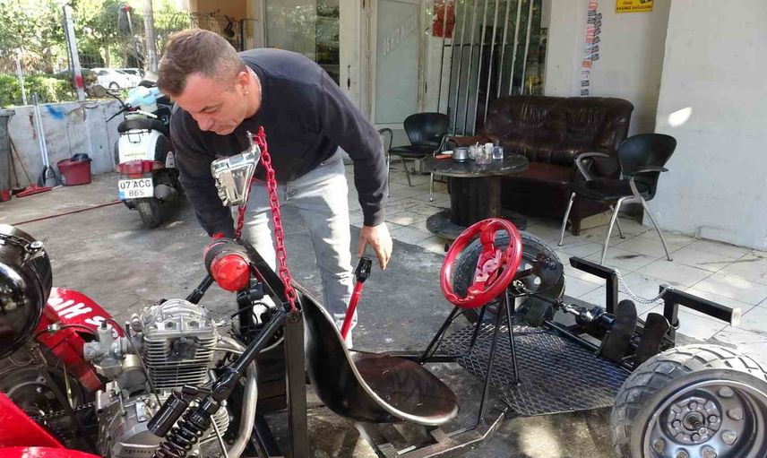 İsa Yalçın, Antalya'da 27 yıllık motosiklet tamircisi. Arkadaşlarının 'yapamazsın, boş ver' sözlerine aldırış etmeden, iki yıl önce kendi hazırladığı proje ile hurda malzemeler ve çıkma parçaları bir araya getirerek aracını yapmaya başladı.
