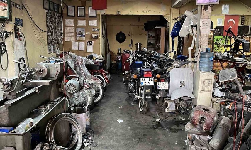 Konya Meram'da baba mesleğini sürdüren motosiklet tamircisi İsa Yeniçağ (40), yıllarca atıl kalan veya hurdaya dönüşen klasik Jawa motosikletleri atölyesinde baştan sona yenileyerek tekrar kullanıma kazandırıyor.